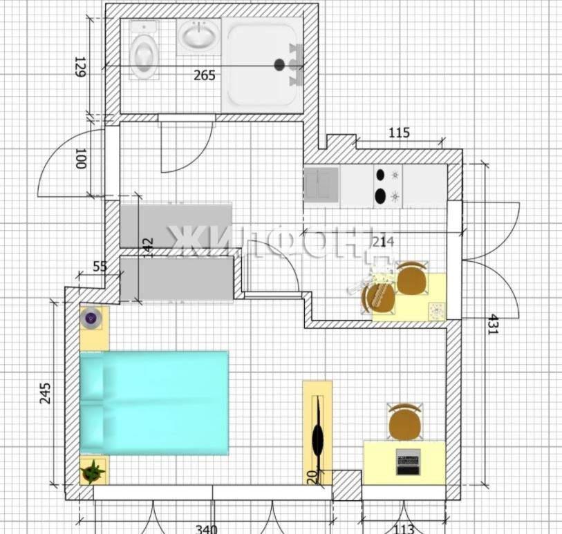 общая 27 м2, жилая 20 м2, кухни 0 м2 |